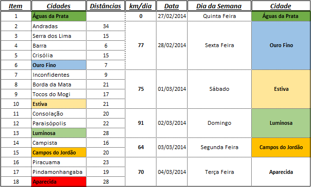 Optamos por fazer o trajeto em cinco dias, saindo de Águas da Prata, ou seja, 335Km de pedal no total com média de 70km dia.